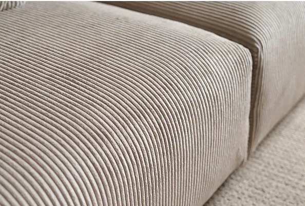 The fabric used for upholstery is corduroy. This fabric is soft and warm